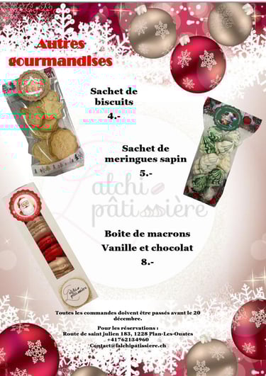 Chaque pâtisserie est préparée à la main, avec des produits de qualité, pour apporter une touche de magie à vos tables de Noël.